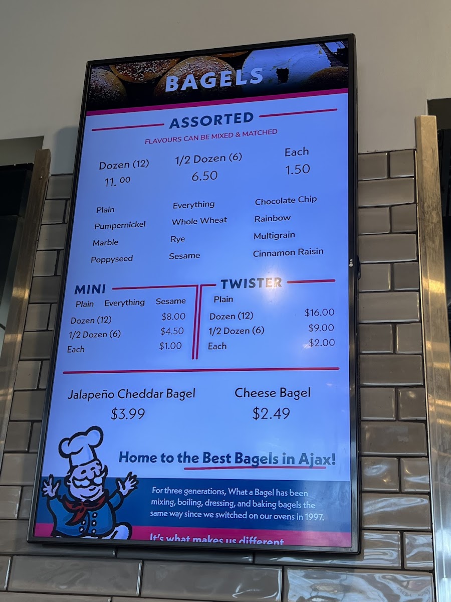 If you’re in Ajax and in the mood for a mouthwatering bagel adventure, look no further than What A Bagel. Nestled at 1 Rossland Rd E Unit F1.4, Ajax, ON L1Z 0T4, this bagel haven is a delightful blend of flavor and warmth, making it the perfect stop for breakfast or a snack any time of day.